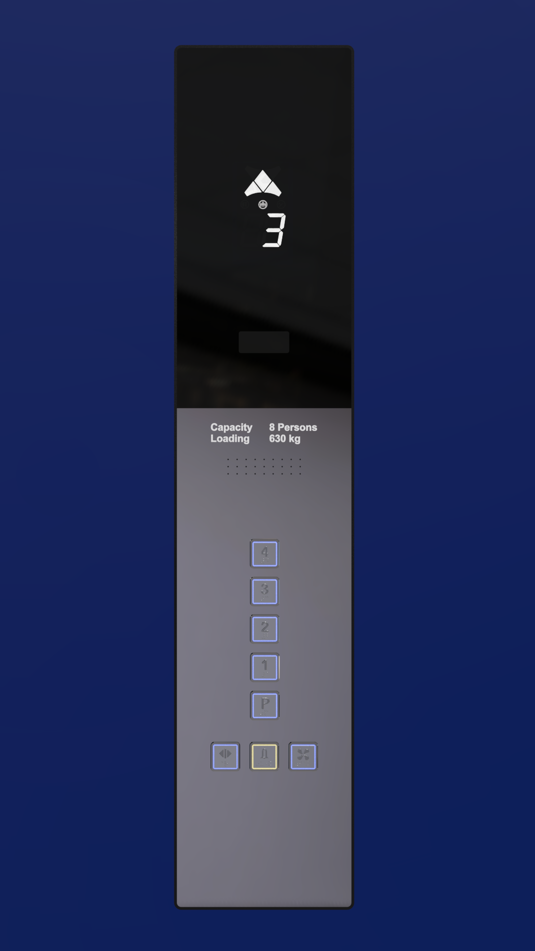 شستی داخل کابین لمسی بیستون در سایز 1 متری با بدنه آلومینیومی رنگ کورهای، مناسب برای پروژههای میانرده تا لوکس.