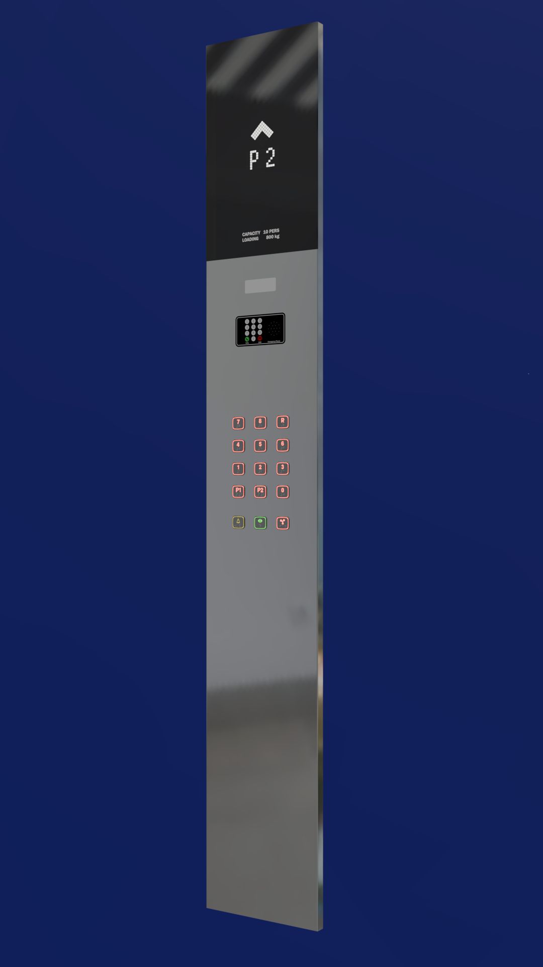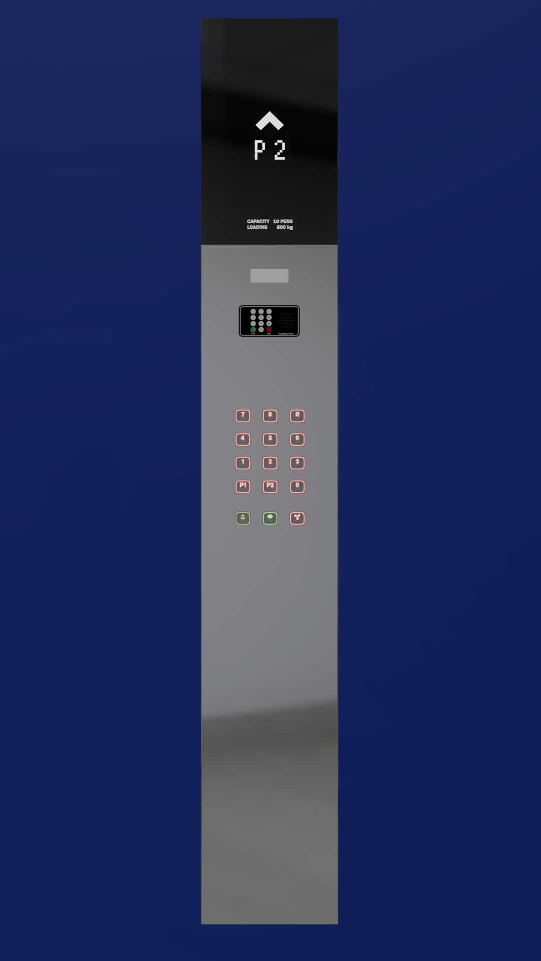 بدنه شستی از استیل ۱ میلی‌متری ۳۴۰ نگیر ساخته شده که مقاومت بالا و جلوه‌ای شیک به پنل می‌دهد. برای نصب نمراتور، تلفن و چراغ اضطراری نیز از صفحات گالوانیزه تقویتی استفاده شده تا استحکام و عمر مفید محصول افزایش یابد.