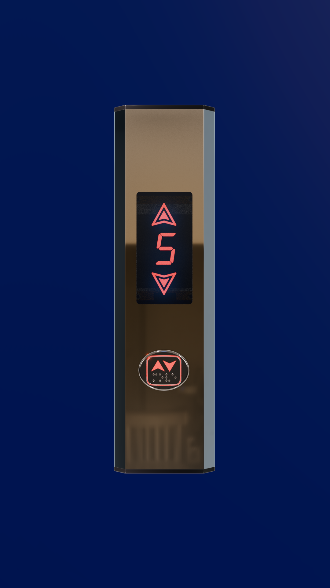 پنل این شستی با ابعاد 27×90×320 میلیمتر طراحی شده و توسط صفحه پشت گالوانیزه به دیوار یا بدنه درب آسانسور نصب میشود.