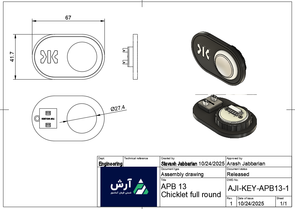 کلید APB13 از سری کلیدهای چیکلتدار آرش تولید شرکت صنایع آسانبر جباریان است. این مدل که با نام تمام گرد نیز شناخته میشود، بهدلیل ظاهر خاص و مینیمال خود، انتخابی محبوب برای پروژههای آسانسور با طراحی داخلی مدرن محسوب میشود.